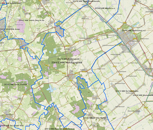 Het werkgebied van WBE Hondsrugveld beslaat een gebied van ongeveer